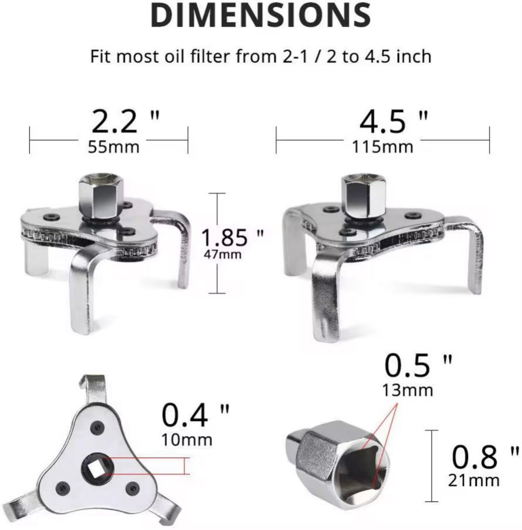 - Adjustable Range: Fits oil filters with diameters from 53mm to 108mm.